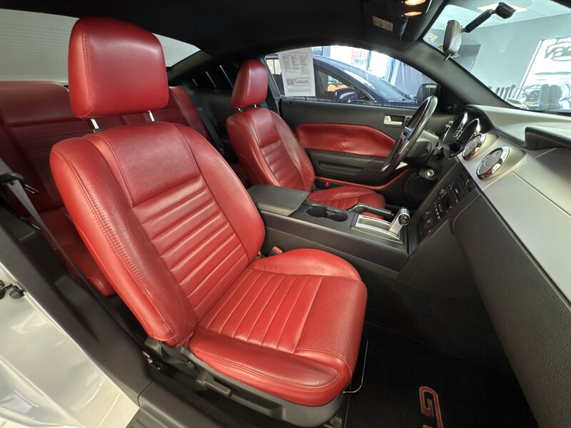 Introducing the 2006 Ford Mustang GT Premium, a timeless classic that embodies the spirit of American muscle with a blend of modern performance and comfort. With its Satin Silver Clearcoat Metallic exterior and luxurious Burgundy leather interior, this vehicle is as striking as it is powerful. The Mustang GT Premium is designed for those who appreciate the thrill of driving, combined with the sophistication of premium features.