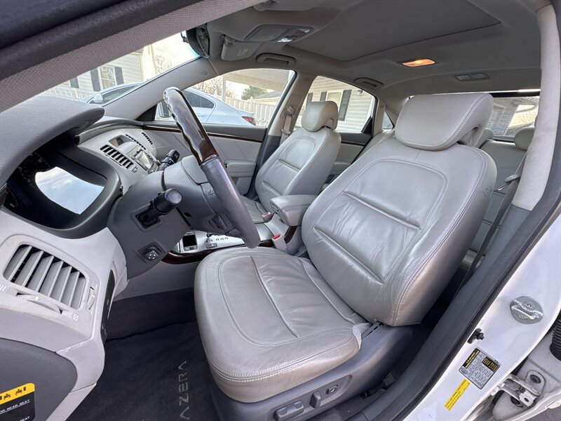 2011 Hyundai Azera Limited — 3.8L V6, Porcelain White Pearl exterior, Beige premium leather interior. This well-maintained Azera Limited is powered by a smooth and responsive 3.8L V6 producing 283 hp and 263 lb-ft of torque, paired with an automatic transmission and front-wheel drive for confident everyday performance. The vehicle averages excellent real-world fuel economy for its class at approximately 19 MPG city and 27 MPG highway, and it has been lightly used with under 98,000 miles (roughly under 7,000 miles per year).